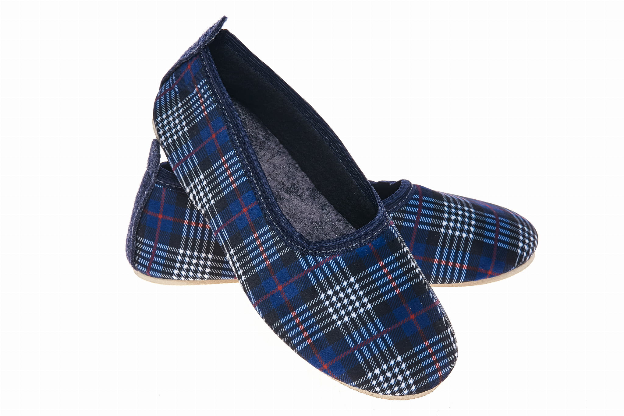 Bambosze damskie krata filc