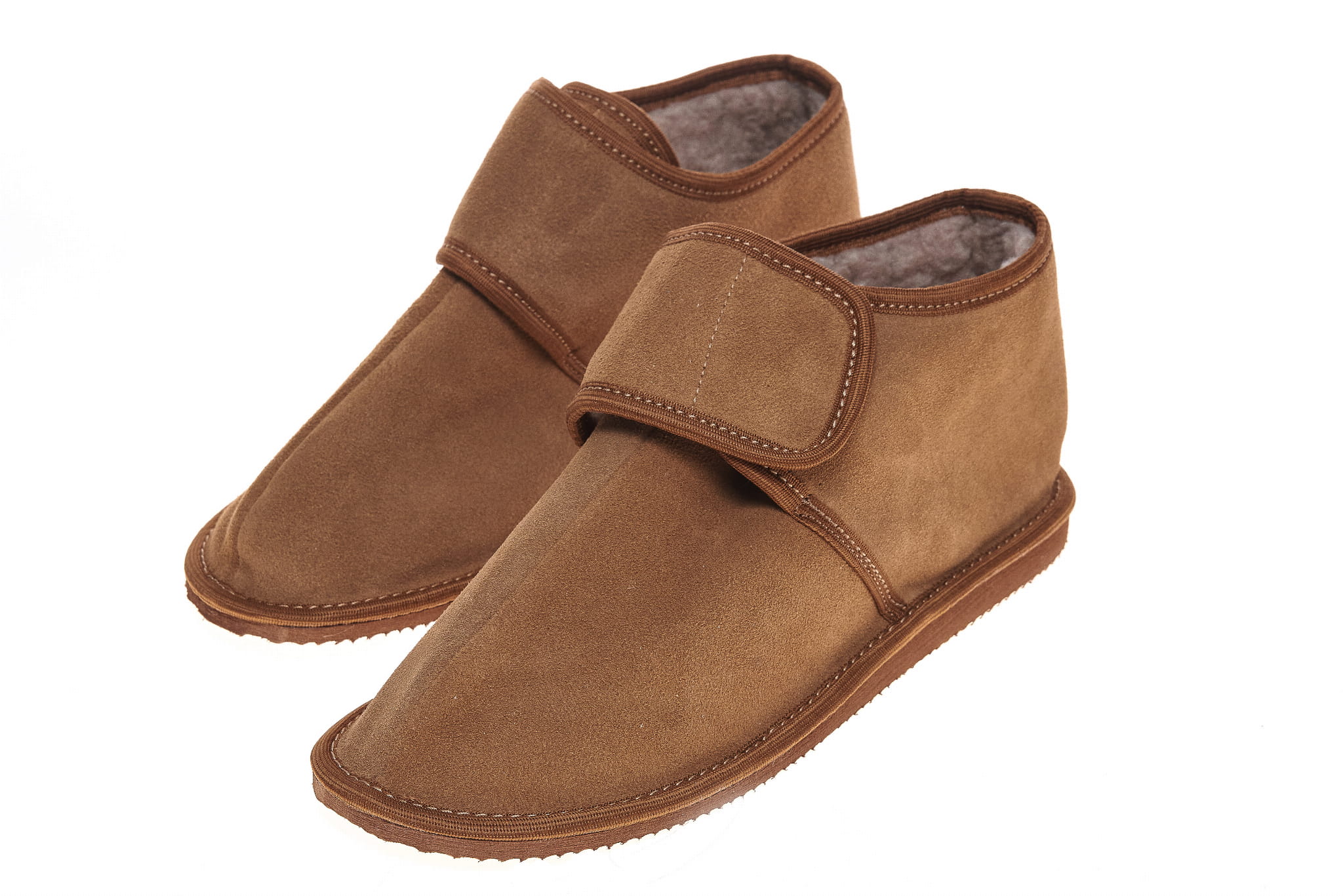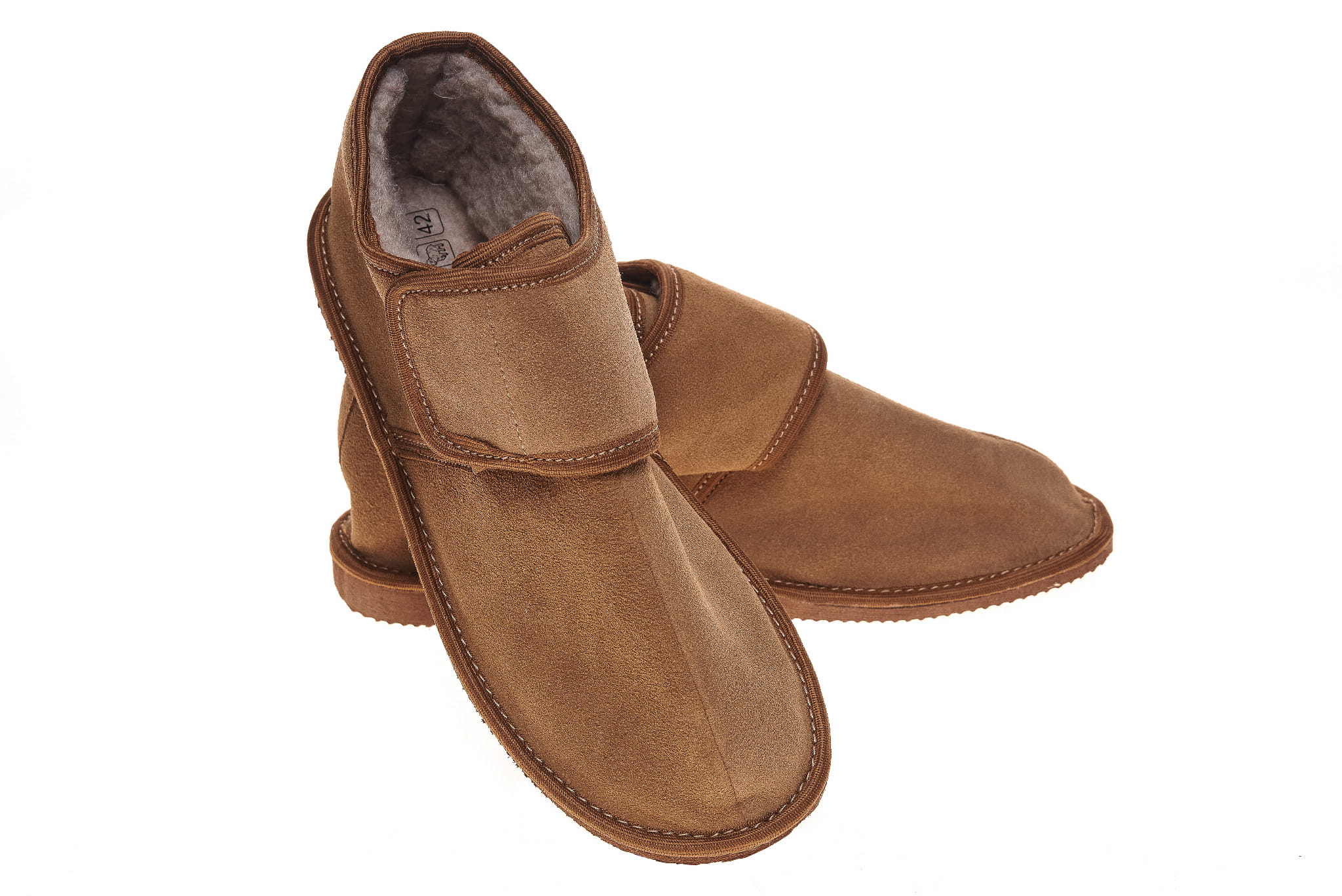 Bambosze zamszowe miodowe na rzepy