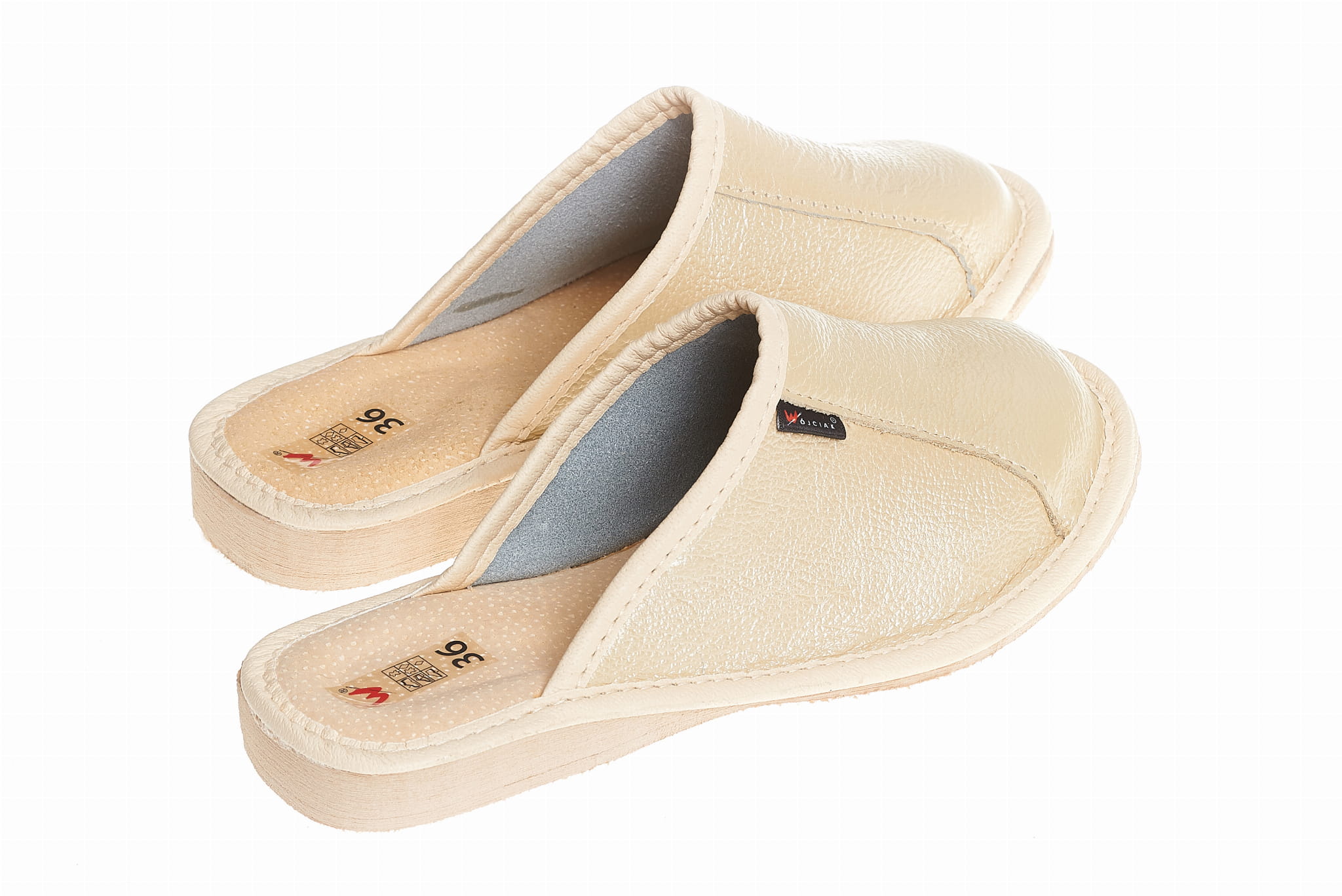 • całość wykonana z naturalnej skóry meblowej co ułatwia oddychanie stopie